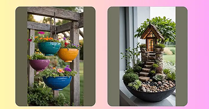 Feeling inspired to give your own outdoor space a fun personality boost? This is your sign to unleash your inner craft wizard! You don’t need to be a gardening guru to turn plain items into something spectacular, just like these hanging wonders. Grab some old bowls, paint, a few sturdy chains (definitely not your grandma’s pearl necklace!), and let your imagination bloom. It’s a super friendly way to add pops of color and personality to your garden, making it a happy, quirky spot that perfectly reflects your unique crafting style.