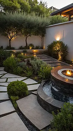 And what’s cooler than a fire pit? A fire pit *and* a water feature, all rolled into one super stylish circular masterpiece! This isn’t your average outdoor hangout; it’s a watery moat around a cozy flame, practically begging for some epic marshmallow roasting sessions or just a quiet evening with friends. This entire minimalist front yard is basically a masterclass in how to make your entrance say, “Welcome to my calm, stylish oasis,” without being all shouty about it. It seriously proves that sometimes, less truly is more – especially when “less” includes a personal fire-and-water show right by your door.