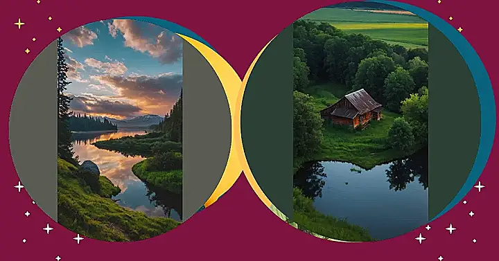 This picture is like a postcard from a peaceful place! There’s a little wooden cabin nestled right in the middle of a green field, and it’s surrounded by tall trees that look like they could whisper secrets to anyone who listens. It’s so calm and quiet, you can practically hear the wind rustling through the leaves. You can just imagine sitting on the porch, watching the sunset paint the sky in gorgeous colours while sipping on lemonade.