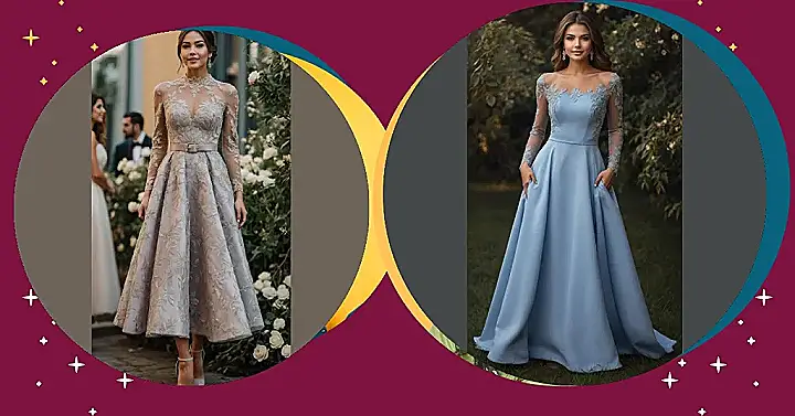 With its delicate lace sleeves and that flowy, pleated skirt, this dress isn’t just pretty; it’s practically a built-in twirl machine! Just be warned, wearing such a super classy gown might give you a sudden urge to practice your royal wave or dramatically descend a staircase. It’s the perfect blend of sophisticated style and “I’m probably just here for the snacks but I look amazing doing it” energy.