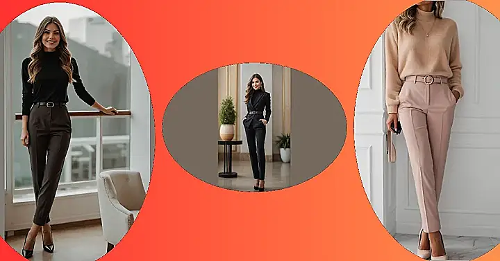 Forget your comfy track pants and graphic tees for a minute and check out this look. It’s what they mean by formal work outfits for women, and honestly, it’s a whole mood. This outfit, with the neat black top and sharp trousers, makes you look like you could totally run a meeting or at least find the really good coffee machine without asking for help. It’s the kind of getup that screams “I have my life together,” even if you’re secretly thinking about what snacks are in your bag.