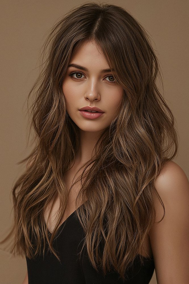 Unlock radiant charm with these stunning layered hairstyles, designed to elevate your natural wavy hair. The medium length layers add dynamic bounce and definition, creating a captivating wavy hair styles for long hair aesthetic.
