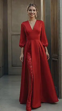 This dress is like a superhero costume, but instead of saving the world, it’s saving you from looking boring at your next party! It’s bright red, so you’ll be the center of attention – just like a superhero, except you won’t be flying around fighting bad guys (unless that’s your thing, then rock on!). The sleeves are big and flowy, making you feel like a graceful dancer, and the slit in the skirt lets you show off your fabulous shoes. It’s the perfect combination of stylish and comfortable, so you can dance all night long without feeling like you’re wearing a stiff, uncomfortable outfit.