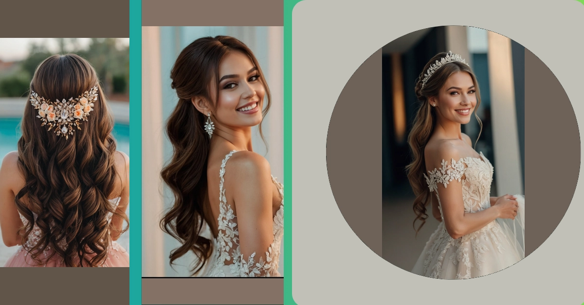 Let’s kick off our exploration with the half up half down hairstyles. This versatile look is a perfect combination for those brides who want to leave long hair down while showing off some stylish elements on the top. With a flattering halfway twist or some delicate braids, this style can easily transition from a simple look to something truly eye-catching. And let’s be honest, nothing beats the feeling of swaying your hair on the dance floor!