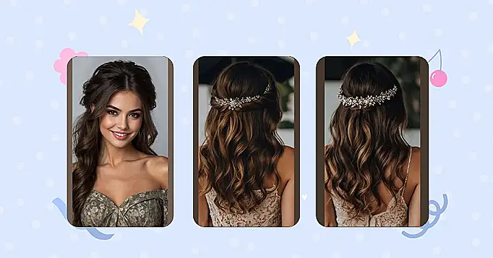 Check out this hairstyle! It’s like your hair decided to go to a fancy party and brought all its cool friends, including that awesome sparkly headband thingy. Forget trying to make your hair cooperate every morning; this look says, “I woke up like this… after an hour with a curling iron and some magic dust.” It’s definitely on the list of latest hairstyles we wish we could nail before rushing out the door, even if our version ends up looking more like we wrestled a squirrel.
