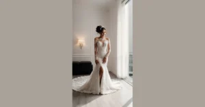This isn’t just a pretty dress; it’s practically a superhero costume for the modern wedding mom! She’s got that confident grin, probably thinking about all the fun dance moves she’s about to bust out, or maybe just how perfectly this dress hides any pre-wedding stress eating. It’s all about looking fantastic while still being able to give out last-minute hugs, chase after rogue flower petals, and maybe even show off some legendary moves on the dance floor. This dress says, “I’m here to celebrate, and yes, I absolutely look this good doing it!”
