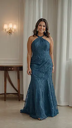 Who says moms can’t absolutely stun at a wedding? This gorgeous woman in her stunning blue gown is proof that ‘wedding mom dress’ doesn’t have to mean boring! With that super chic halter neckline and the fancy swirly patterns all over, she’s ready to walk down the aisle looking like a movie star – or at least ready to awkwardly hug all the distant relatives without wrinkling a thing. Her smile practically screams, “Yes, I coordinated this entire event, and I still look this fabulous!”