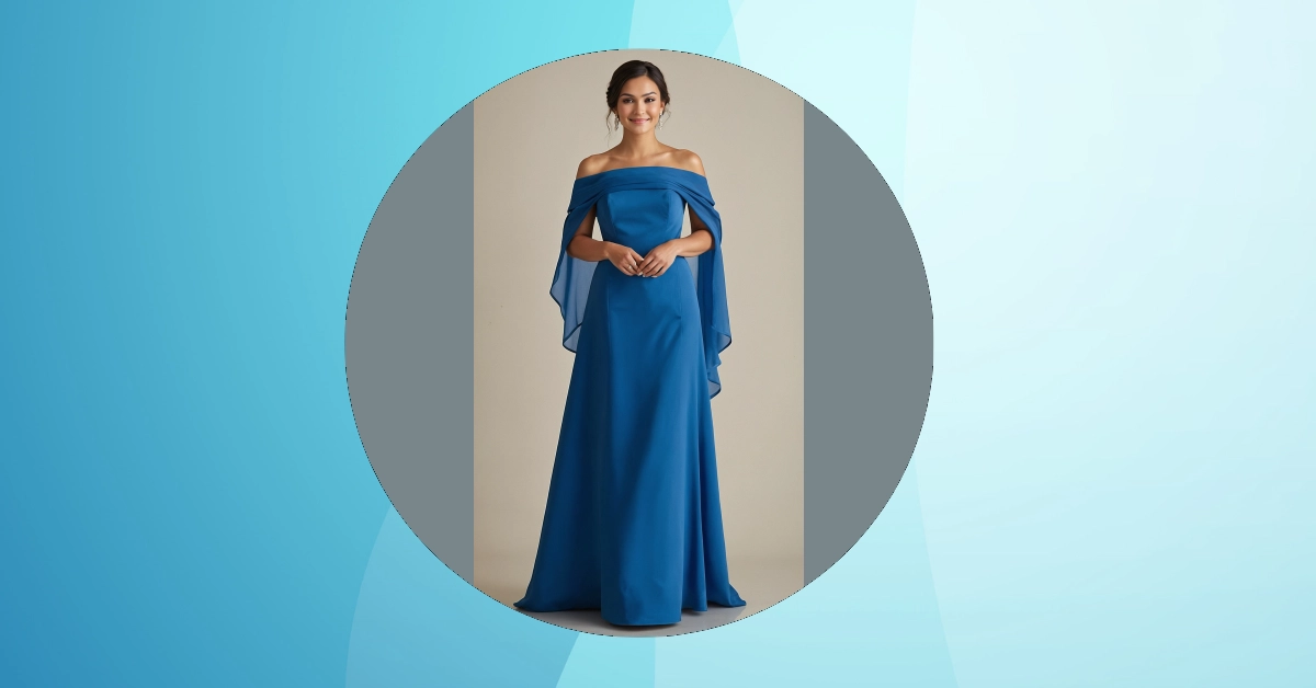 Who says moms can’t be total showstoppers at a wedding? This gorgeous blue dress is practically saying, “I’m the mom, and I’m ready to celebrate… and maybe also subtly remind everyone who the original boss is.” With those flowy, off-the-shoulder sleeves, you can gracefully wave to guests, comfort the happy couple, or maybe even pull off a secret handshake with the DJ. It’s elegant enough for all the emotional moments, but also looks ready for some serious dance-floor action once the ‘Cha-Cha Slide’ starts playing!