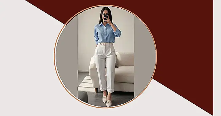 This outfit is proof that you don’t have to wear a boring old uniform to look sharp and professional. This woman is rocking a crisp blue shirt with white pants, which is a classic combination that always looks polished. And check out those cute shoes! They add a touch of personality to the outfit without being too over-the-top. Imagine this outfit for a job interview or a presentation at school—you’ll totally impress everyone!