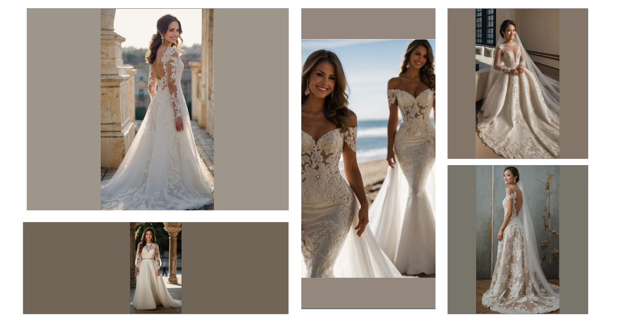 These dresses are like something out of a dream! Seriously, imagine walking down the aisle in one of these gorgeous gowns. They’re all so different – one’s got a super cool high-neck collar and pretty lace sleeves, while another shows off a stunning back. It’s like choosing between a princess ballgown and a sleek, modern mermaid style, both perfect for a fairytale wedding! They all have that delicate lace detailing that just screams “bridal dress aesthetic”, don’t you think? It’s almost too pretty to be true!