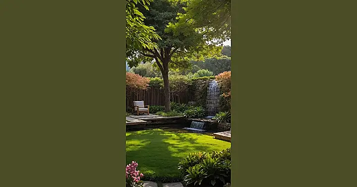 And who even needs a million fussy garden gnomes when you have a freaking waterfall right there? This place isn’t just a front yard; it’s a mini-vacation spot disguised as your home’s entrance. That single, comfy-looking chair tucked under the big, leafy tree? That’s not just furniture; it’s a VIP pass to ultimate relaxation, practically screaming, “Come sit here and pretend you don’t have homework.” It’s proof that sometimes, picking a few awesome things and making them shine makes a much bigger splash than just stuffing everything into your outdoor space.