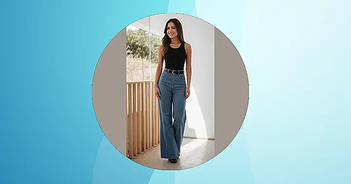 Now, let’s talk about those epic wide-leg jeans our model is rocking! Paired with that sleek black tank and a cool belt, it’s not just an outfit; it’s a whole mood. These aren’t your grandma’s stiff jeans; these are the kind you could probably do a full cartwheel in (though we don’t recommend trying that in the hallway!). It’s the ultimate ‘tank top outfit’ that screams, “I’m effortlessly chic, comfy, and probably just remembered I left my homework in my locker, but still look fabulous.” So go ahead, find your favorite tank top, pair it with some awesome wide-leg jeans, and conquer your day like the fashion legend you are!