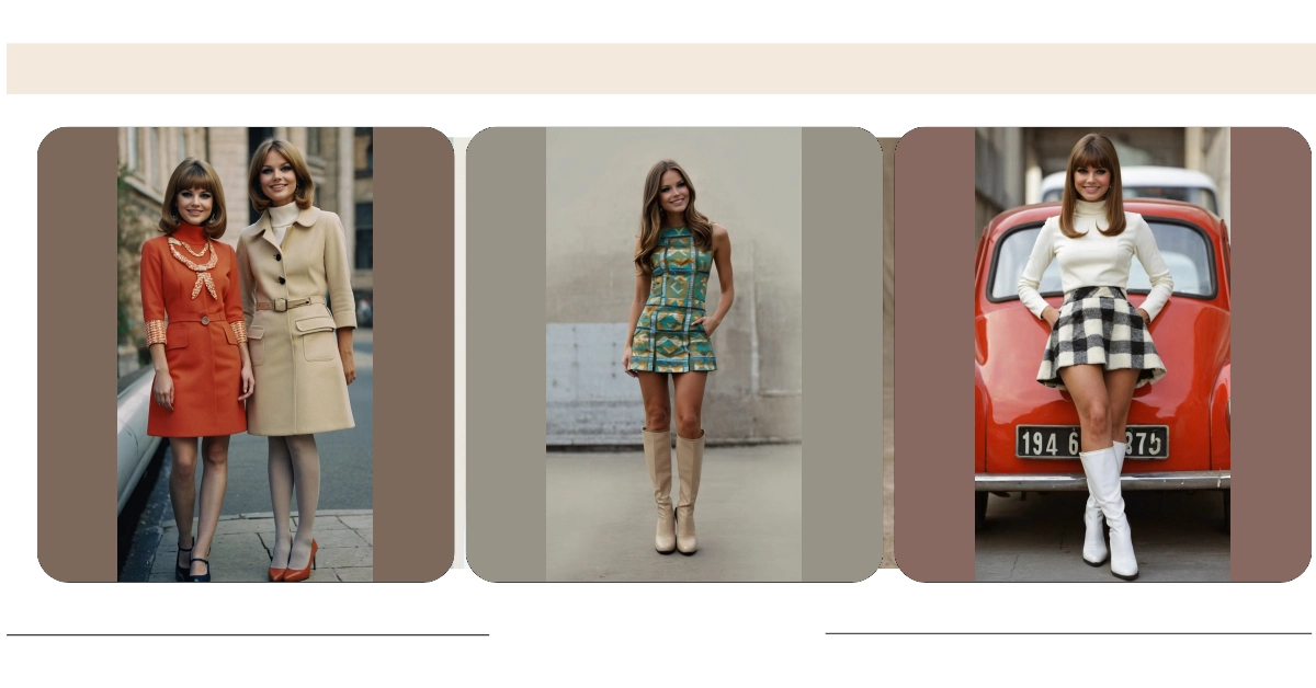These ladies are rocking the sixties fashion scene! With their bold colours, geometric shapes, and super-cute mini-skirts, they’re totally ready to hit the town. The white boots on the left are a little odd, but hey, that’s just the groovy sixties for ya! You gotta love the confidence these ladies are showing off, like they own the whole world.