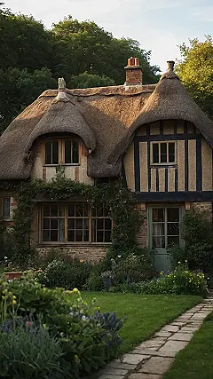 This sweet little cottage is straight out of a storybook! It’s got that classic English charm, with its crooked roof, stone walls, and cute little windows. Imagine yourself sipping tea on the porch, watching the clouds drift by, and listening to the birds sing. It’s the kind of place where you can totally forget about the world’s worries and just relax.