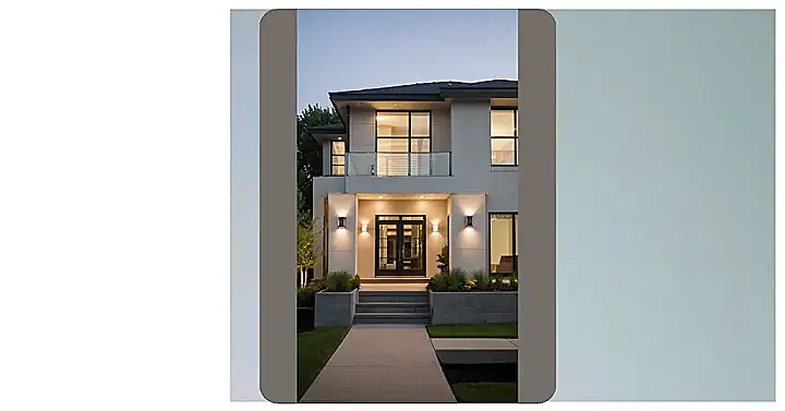 Imagine having those huge windows letting in all the sunshine during the day, and then at night, watching the city lights twinkle from your comfy living room. This modern suburban house is not just about looking good; it’s about feeling good too. Those smart-looking outdoor lights not only make the place look fantastic but also feel extra secure – safe and stylish, what more could you ask for? It’s like a movie star’s house, but way more relatable.