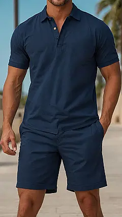 Summer’s here, and let’s be real, nobody wants to be stuck melting in long pants when the sun is out flexing its muscles. That’s why mens shorts are basically your secret weapon for conquering warm weather! Check out our buddy in the image, looking absolutely ready for anything, from a casual stroll to perhaps spontaneously joining a beach volleyball game (he definitely has the calves for it!). His cool navy shorts and matching polo scream ‘I’m comfortable, I look great, and I’m probably having more fun than you in your jeans!’