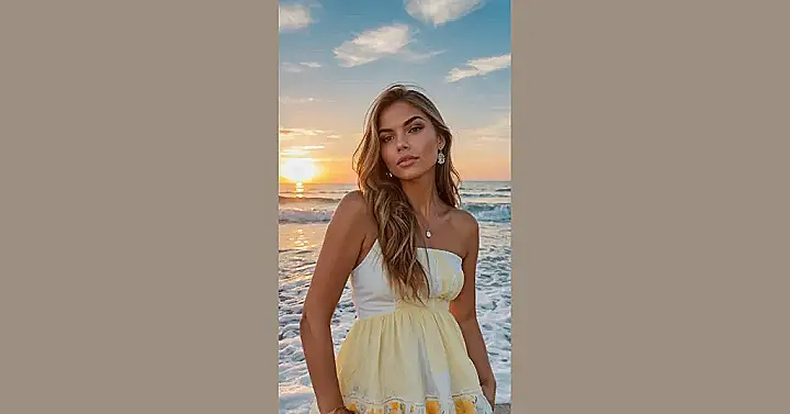 Wow, look at that golden light! This photo is giving us serious beach vacation goals and making us question our own attempts at capturing beach moments. Usually, my beach photos involve me wrestling with a towel in the wind or trying to hide the fact that I’ve already eaten half the snacks before noon. But this? This is the kind of picture that makes you want to pack a fancy (but breezy) dress and pretend you’re in a music video, minus the sand getting absolutely everywhere.