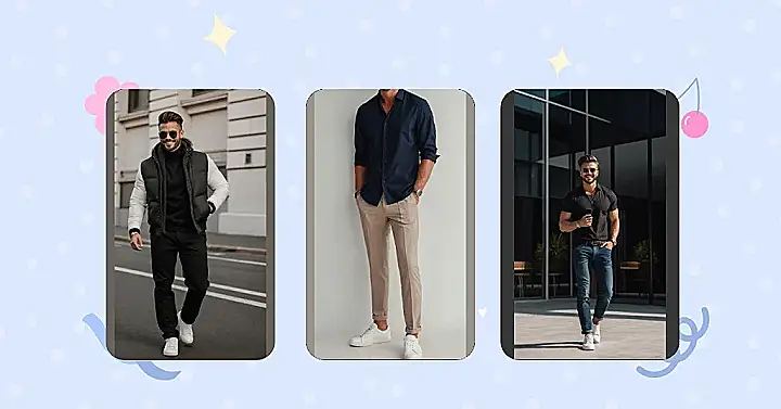This isn’t just a stylish men’s outfit; it’s practically a superpower disguise. You could be heading to a chill hang-out, a family dinner where you want to impress grandma, or even just trying to look good while grabbing a snack. The simple colors make it super easy to match, so you won’t accidentally step out looking like a confused rainbow. And let’s be real, those crisp white kicks are so fresh, they probably deserve their own fan club. This look proves that sometimes, less truly is more, especially when you’re trying to avoid a fashion emergency.