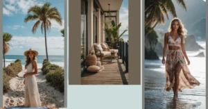 Getting that perfect beach pic isn’t just walking onto the sand and snapping away, unless you enjoy looking like a windblown mess with sand in your teeth. This photo gives us serious goals! Look at the chill vibe, the cool hat, the flowing dress, and those perfect palm trees photobombing just right. It’s like the wind decided to cooperate for five glorious seconds instead of trying to turn your hair into a bird’s nest while you blink dramatically into the sun. Definitely major beach inspo photography happening here.