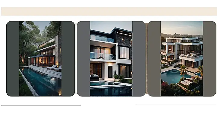 This villa is like something out of a magazine! It’s so modern and sleek, with huge windows that let in all the sunlight. It’s like living in a giant glass box, but in a good way. And the best part? That pool! It looks so refreshing and inviting. I bet it’s the perfect spot to relax and escape the heat, maybe even with a juicy magazine and a cold drink in hand.