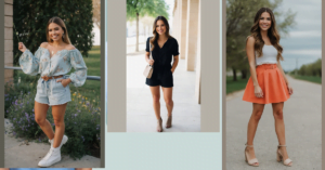#9 Summer Radiance: Orange Print Mini Skirt with Crisp White Shirt