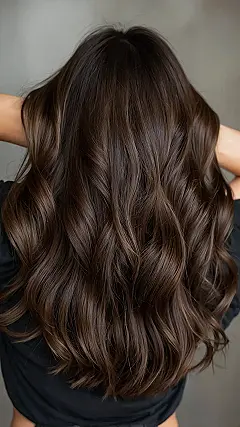This picture showcases some seriously rich brunette hair, the kind that looks like it has its own fan club and probably gets invited to exclusive hair parties. It’s got that perfect blend of tones and shine, making you wonder if it was styled by magic or just won the hair lottery. Forget diamond rings, this hair looks like pure gold… well, brown gold! It honestly makes you want to politely ask it for its secrets, or maybe just borrow a strand for good luck.