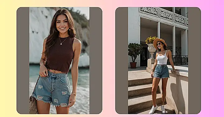 This outfit is basically sending a postcard from ‘Chill Town, Population: You!’ That awesome ribbed tank top looks like it’s having a super cozy conversation with those perfectly distressed denim shorts. Seriously, this combo is so ready for summer, it practically packed its own sunscreen. It’s the kind of look that says, ‘I woke up like this, then decided to effortlessly look amazing for my beach adventure,’ which is basically our dream vibe for avoiding school and soaking up some sun.