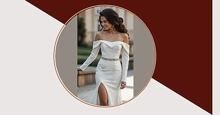 You know how some wedding dresses look like you’re wearing a giant, fluffy cloud? A minimal wedding dress is the total opposite, and honestly, it’s pretty awesome. It’s sleek, doesn’t require its own zip code to store, and lets you actually move around without getting stuck in doorways. Look at this one! It’s got a cool slit so you can walk like a regular human (or maybe even do a little strut?), and those shoulder flowers add just the right amount of fancy without going totally overboard. It’s basically proof that less can totally be more, especially when it comes to avoiding face-planting on the dance floor.