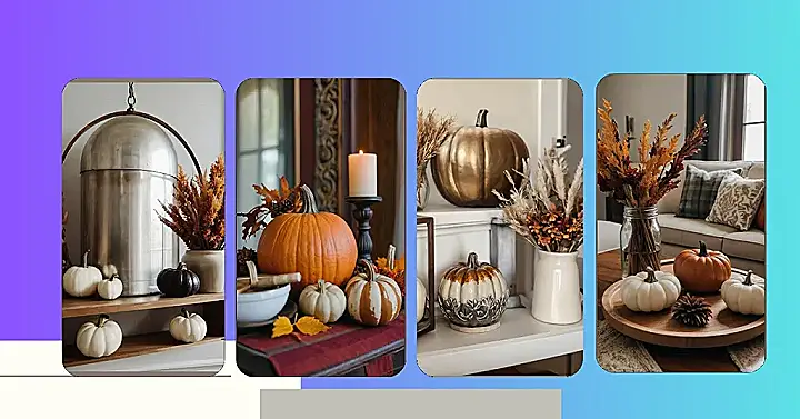 This image is like a cozy hug on a chilly autumn day! It shows that you don’t need a ton of bright orange and red to get that fall feeling. Just a few simple elements, like a white pumpkin, some dried leaves, and some candles, are all it takes to create a warm and inviting atmosphere. And the best part? This kind of decor is super easy to put together, even if you’re not a pro at decorating. No need for a million pumpkins or a spooky spiderweb – simple and sophisticated is the way to go!