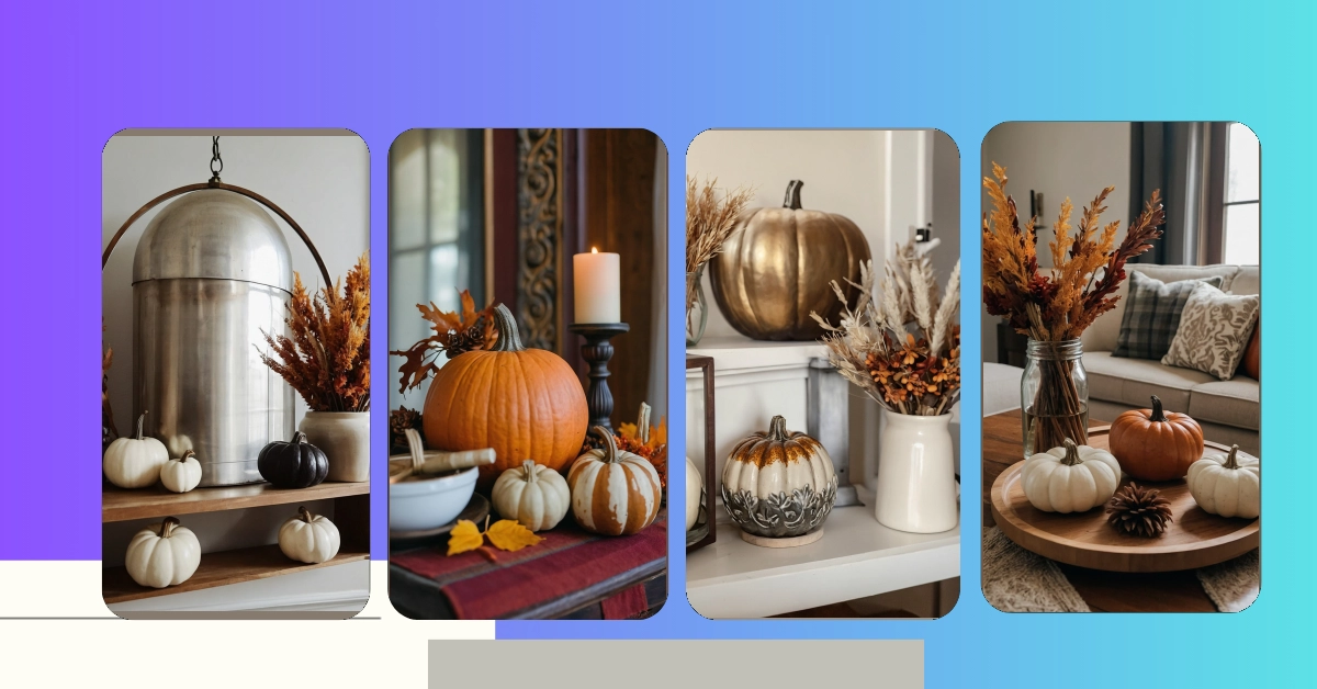 Even the colors are pretty neutral. The table is wood, the vases are brown and gray, and the pumpkins are that kind of orange that’s not super bright, but still totally fall vibes. It’s all about those subtle touches, like how the leaves are turning from green to orange, and the sunlight coming through the window. It’s like the perfect way to welcome fall into your home without going all out with the Halloween decorations. Just comfy, cozy, and stylish.