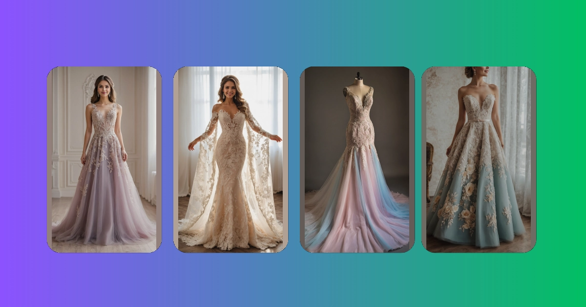 Think about it: why stick to basic white when your wedding day is all about celebrating *you*? Choosing a colored wedding dress, even one with just a hint of blush, champagne, or soft blue, is like telling the world, “I’m here to party, and I brought my own awesome color palette!” Plus, it’s a brilliant way to make sure no one confuses you with the catering staff (unless your dream wedding outfit involves a chef’s hat and apron, which, hey, no judgment!). So, if you’re dreaming of a day where you shimmer in something unique, don’t be afraid to ditch the traditional white and embrace a shade that truly makes you smile – just like this dress perfectly shows off a gorgeous non-white vibe!