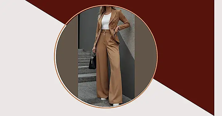 What’s super cool about wide-leg trousers, like the awesome white ones in this picture, is how they instantly upgrade any look without even trying too hard. These pants have an amazing superpower: you can dress them up for something important, or pair them down for a casual day out and still look totally put-together. One minute you’re looking sharp and confident in this brown blouse and these flowy pants, ready to conquer the day, and the next you could totally swap for a funky cropped top and sneakers for a coffee run. These aren’t just clothes; they’re your secret weapon for looking effortlessly chic and feeling fantastic no matter where your day takes you.