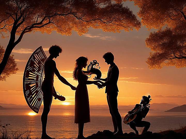 One day, a beautiful girl named Eurydice heard Orpheus’s music. She went towards the music and saw Orpheus playing his lyre. Their eyes met, and they felt a strong connection. It was love at first sight.