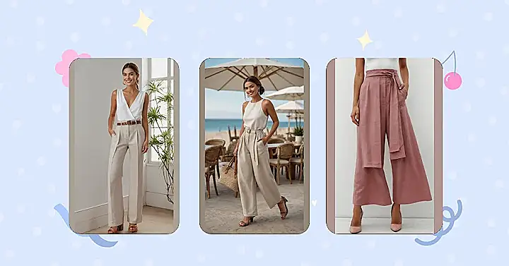 Who knew pants could be this chill and fancy at the same time? These linen pants aren’t just for chilling by the beach (though they’re great for that too!). Pair them with a cute crop top and some heels, like our friend here, and bam! You’re ready for anything from a fancy brunch to pretending you know what you’re doing at a summer internship. They’re basically the fashion equivalent of a best friend – always got your back and make you look good doing it.