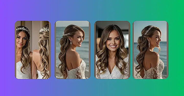 And the best part? These looks are actually pretty easy to achieve. No crazy intricate braids or updos needed – just some curls and a little bit of styling magic! Plus, the accessories add that extra touch of glam without being over-the-top. So whether you’re going for a fairytale wedding or a more modern celebration, these hairstyles are total winners!