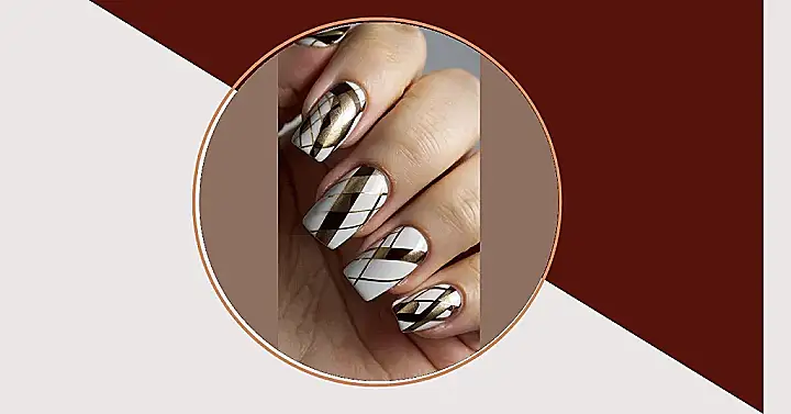 Forget boring solid colors, because these plaid nails are straight-up *nailing* the fancy-but-fun vibe! With a mix of crisp white, rich chocolate brown, and shimmering gold lines creating those cool diamond patterns, your fingertips are basically a masterclass in geometry that you’ll actually want to look at. It’s like your nails decided to put on their best argyle sweater, but way more sparkly and less itchy. Who knew squares and lines could look so chic and ready for anything from a study session to showing off at the mall?