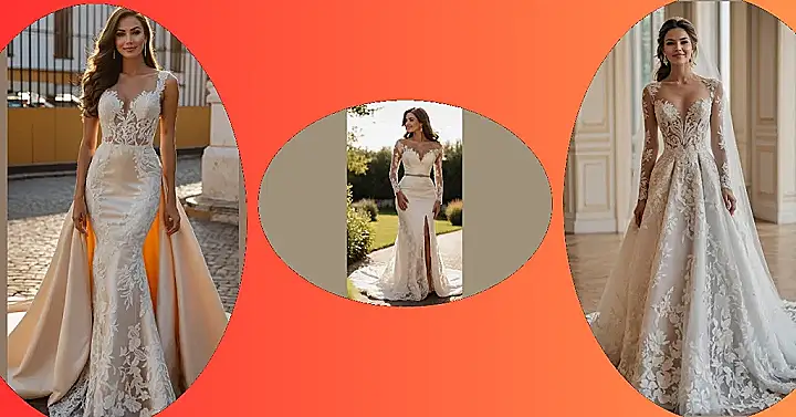 And let’s not forget that amazing, intricate lace that covers every inch, especially on those long, elegant sleeves and the seriously impressive train. It probably took a whole team of skilled designers (and maybe a few tiny fashion elves) to stitch all that beauty together! This kind of wedding dress might make you wonder if you can actually sit down or if you’ll need a personal assistant just to manage the train, but who cares when you look this absolutely stunning? It’s proof that a beautiful, well-fitted gown, maybe with a little hidden corset support, makes a bride shine like a superstar on her big day.
