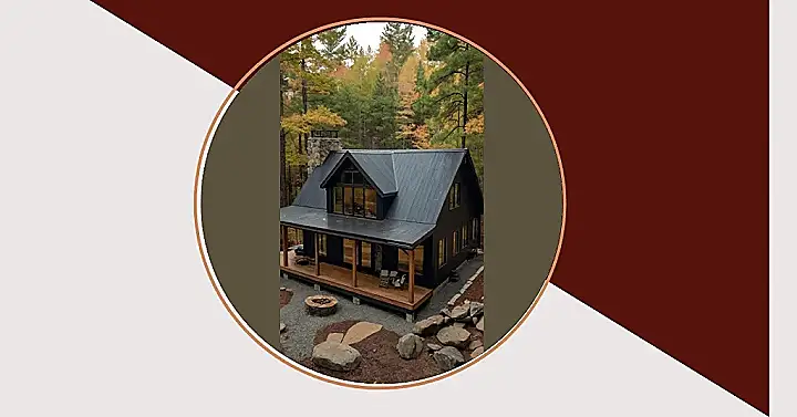 This isn’t your grandma’s cabin! Check out this super-stylish, modern cabin nestled amongst fiery autumn leaves. It’s like someone took a sleek, black spaceship and gently landed it in a painting – a seriously awesome painting with tons of vibrant fall colors! Imagine cozy nights by the fireplace, sipping hot cocoa, while watching the leaves change outside those huge windows. This cabin house plan is the perfect blend of nature’s beauty and modern design, proving that rustic can be ridiculously chic.