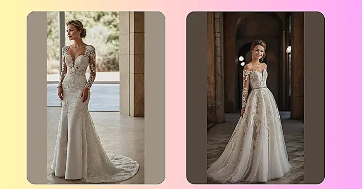 Picking a ‘classic’ wedding dress like this style with the long sleeves and fitted shape definitely looks super elegant and timeless. Thinking about posing perfectly like that in the image is kind of funny though; you’d probably feel less like a queen and more like a statue trying not to wrinkle the perfect fabric. And that long veil and train? You’d definitely need a squad of friends just to manage it all, like a secret wedding dress support team. Still, it’s the kind of dress that makes you look totally ready for a big adventure, like starting a whole new chapter!