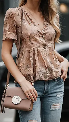Wearing a beautiful blouse like the flowery one in the picture is basically like adding a filter to your real life, but for your outfit. You could be wearing your comfiest ripped jeans, but pop on a gorgeous blouse with some pretty details, and suddenly you look effortlessly cool. It’s like that magic trick where you instantly look ready for anything, even if you just woke up ten minutes ago. This kind of top is a total game-changer for looking pulled together without actually having to try that hard.