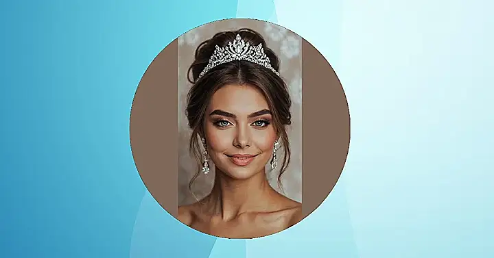 Just check out that majestic hair! It’s all swept up into a beautiful bun, probably secured with about a million bobby pins and enough hairspray to withstand a small tornado. Our star here is rocking a seriously sparkly tiara, making her look less like she’s getting married and more like she just stepped out of a fairytale, ready to claim her throne (or at least the dance floor). You know it took some serious magic and probably a few hours in the stylist’s chair to get that level of ‘I woke up like this, but better’ perfection.