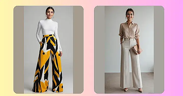 Forget those days when trousers felt like a strict school uniform! Take a peek at this awesome outfit: those wide-leg pants are basically like wearing your comfiest blanket but looking totally ready for a red carpet. The woman in the picture proves you can be super stylish and still have enough room to do a happy dance – or at least conquer that really long hallway walk between classes. It’s like your legs decided they needed their own personal dance floor, and honestly, who can argue with that kind of comfy chic?