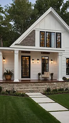 Speaking of picturesque, let’s talk about how accents can elevate your exterior. Tiny details like green trim or a lovely gray pathway can make a big difference and enhance that cozy vibe. All these elements work together to create an enchanting environment. Suddenly, your home becomes a mini getaway, leaving you excited to come home after a long day!