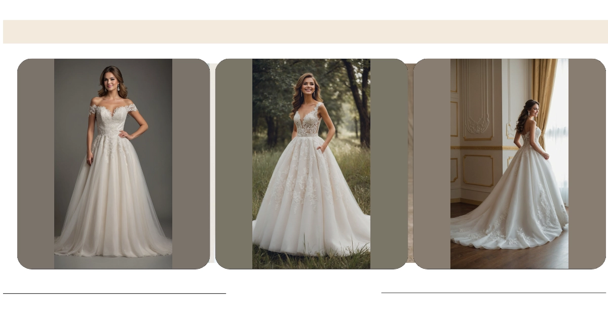 This isn’t just a dress; it’s a full-on, show-stopping event! The pretty off-the-shoulder straps and that intricate lace bodice are seriously giving ‘glam queen’ vibes. And with a waistline that’s perfectly sculpted, much like a stylish Basque waist, you might even forget you just ate two slices of wedding cake! Plus, think of the endless twirls you could do in that magnificent skirt – just try not to accidentally sweep up any small relatives on your way to the dance floor!
