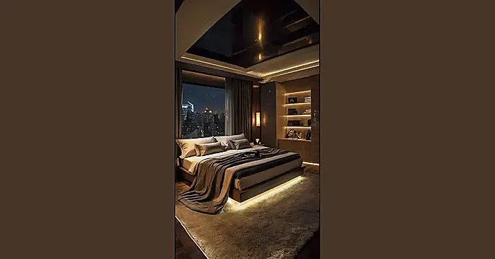 Now close your eyes and visualize a bedroom that is a symphony of sophistication and tranquility, where every element is thoughtfully arranged to embody a sense of effortless style. Clean lines and minimalistic furniture blend seamlessly with decorative accents that add a touch of personality to the space. The soft glow of ambient lighting casts a warm and inviting aura, enhancing the serene atmosphere that beckons you to unwind and recharge. This harmonious balance between grace and serenity transforms a simple room into a luxurious retreat that exudes charm and refinement.