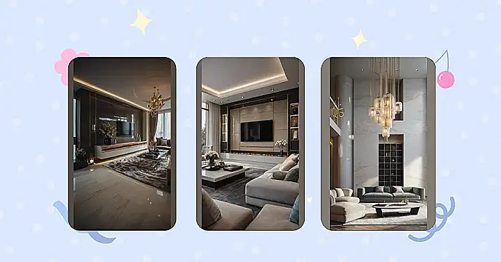 But even though this room is super fancy, it still feels kinda cozy with that soft rug and the comfy couch. It’s like, if you could make a living room out of a cloud, this would be it. Maybe you could even have a pet llama lounging on that giant couch with you. I mean, why not, right? It’s a luxury living room, anything goes!