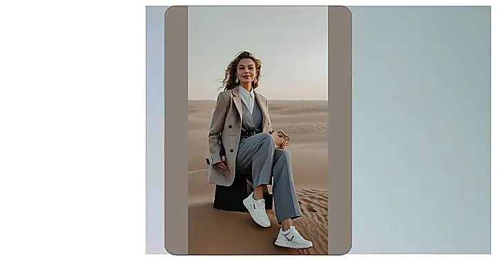 It’s a fun twist on the classic “old money” aesthetic, proving that you can be elegant and effortlessly cool at the same time. This outfit totally reinvents the idea of what it means to be stylish – it’s all about mixing unexpected pieces and having fun with your fashion. Who knew a desert backdrop would be the perfect setting to show off a sophisticated yet surprisingly comfy outfit? This look is giving us major inspiration to embrace comfort and elegance wherever life takes us.