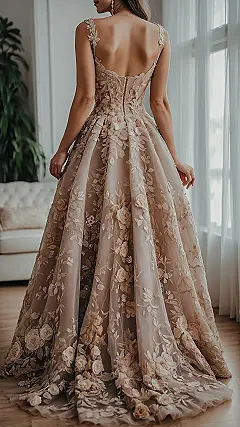 Just imagine trying to dance in this incredible creation! You’d probably need a whole team of bridesmaids just to help you twirl without tripping over those gorgeous floral layers. But honestly, who cares if you can’t bust out all your best moves when you look this absolutely stunning? This classy wedding dress is all about making a statement, turning every step into a grand procession. It’s the kind of dress that makes you feel like royalty, ready to gracefully float (or carefully shuffle) down the aisle, leaving a trail of pure elegance and maybe a few dropped jaws behind you.