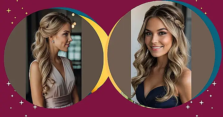Looking for something a bit more laid-back? Try a half up half down braid that gives you that oh-so-casual yet stylish touch. Seriously, it’s like the perfect marriage between sophistication and “I just rolled out of bed, but in a fabulous way.” Mix in some boho vibes and a side braid for an irresistibly chic look that won’t wear you down on the dance floor!