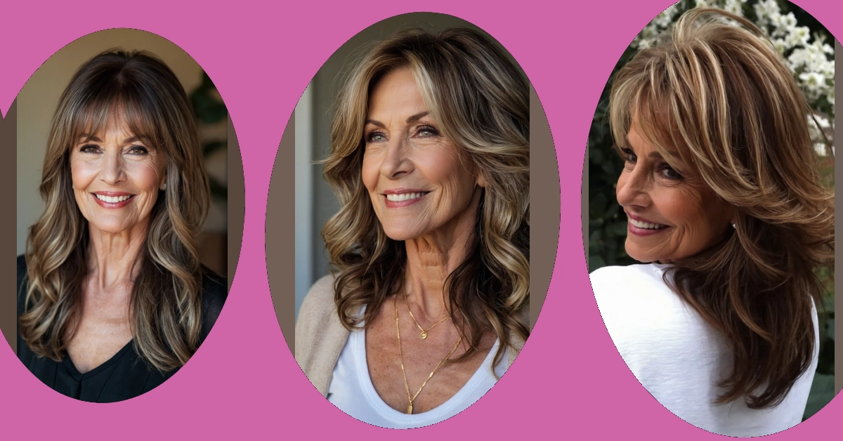 This lady is rocking her layered hair! It’s long, it’s full of volume, and it frames her face perfectly. Seriously, it’s like her hair is saying “I’m over 50 and I’m still looking fabulous!” And she’s not just rocking her hair, she’s rocking her whole life. Just look at that smile ‚Äì it’s bright, it’s genuine, and it’s saying “I’m happy, I’m confident, and I’m ready for anything!”